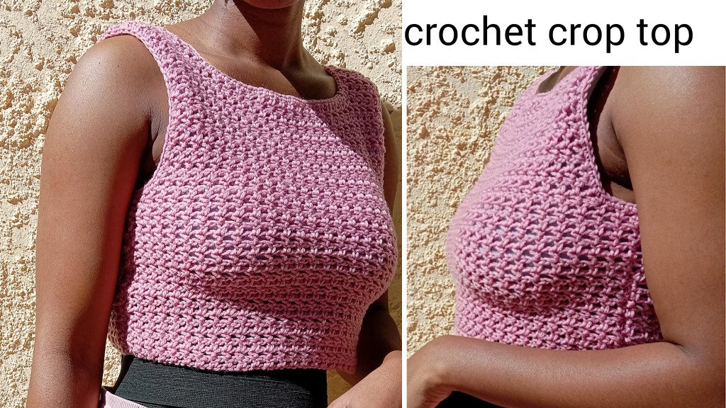 The top is worked by first starting with crocheting 2 separate panels, then seam them together. It is worked by flat layered the project, and keep turning over throughout. In case you would want to make your crop top in a bigger size then add more chains to your foundation chain as this will be around your waistline and this applies only if you intend to make a normal length top, or if you want to make it a crop top then the foundation chain will be around your ribs and if you want a bralette top then the foundation chain will be around your upper ribs and add more or less chains to your foundation chain before you proceed with your entire project depending on your top’s desired length.